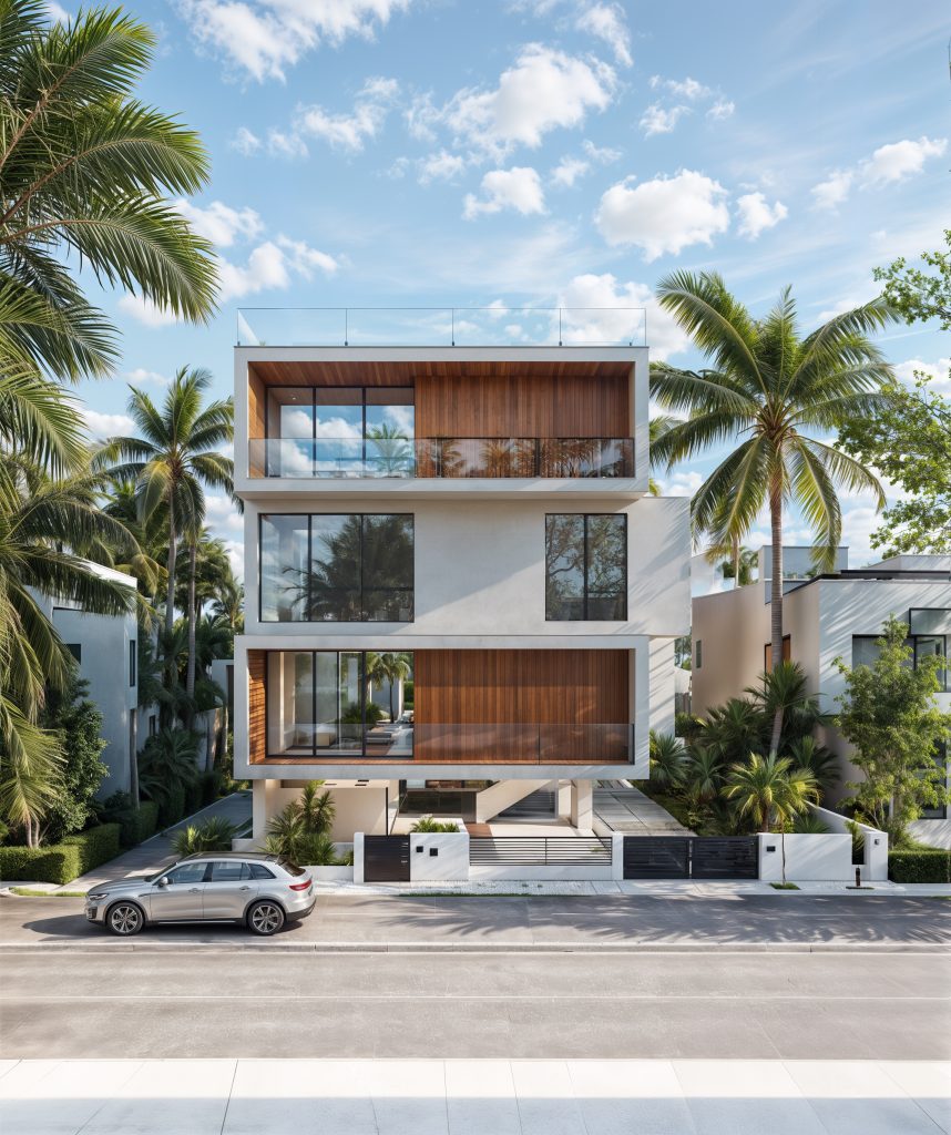 Quadro residential building is located on Kish Island. The main design concept of this building is based on rotation. It consists of 6 pure boxes that rotate towards each other. In this way, the middle floor has rotated 90 degrees compared to the other two floors and has created an attractive volume and space.