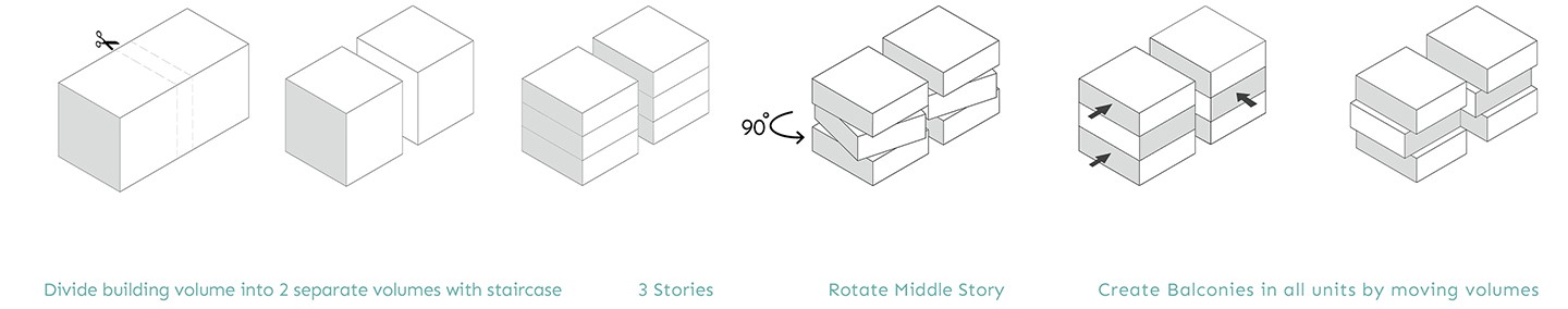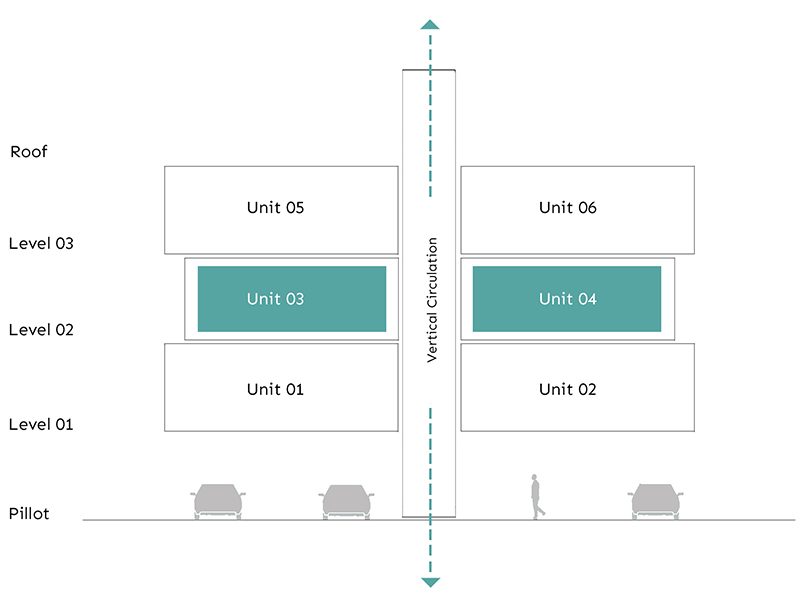 Totally, it has 6 units on 3 floors and is divided into two symmetrical blocks with 3 separate units, which are connected by a vertical circulation in the center of the building. Extruded balcony frames, while preventing direct sunlight, help reduce solar heat and also create a pleasant atmosphere inside.
