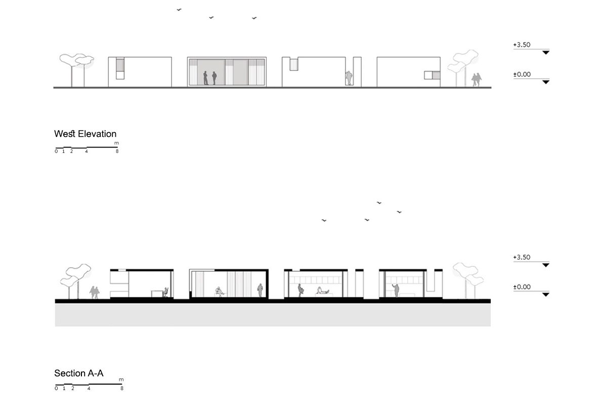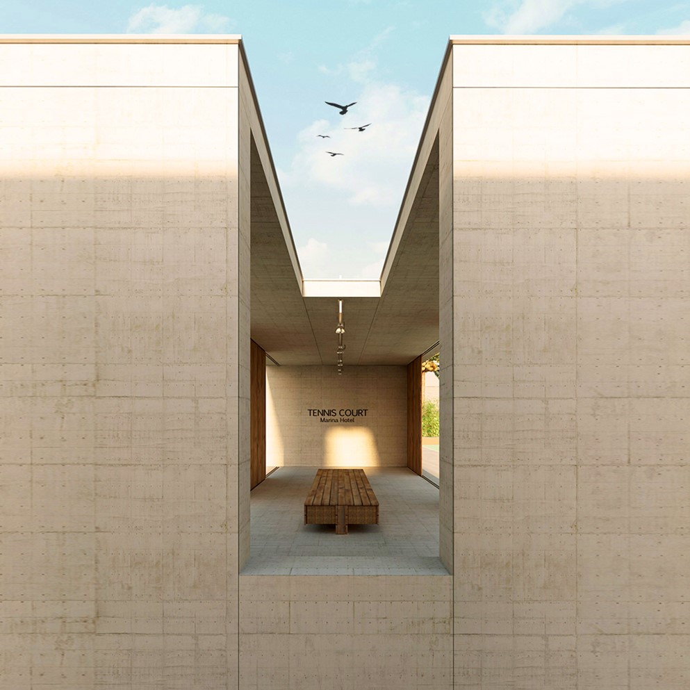 Clad in concrete and wood, this service building comprises a series of administrative offices, recreational facilities, and covered seating areas for match spectators. It is located on the beautiful Kish Island, adjacent to the Marina Park hotel tennis court.